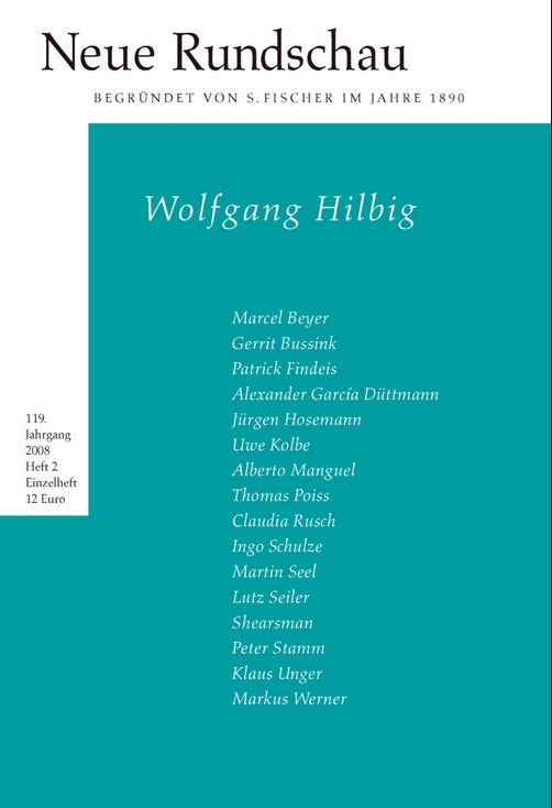 Wolfgang Hilbig. Neue Rundschau Band 2008/2 würdigt den Dichter mit zahlreichen Essays, die Kollegen aus dem Literaturbetrieb über ihn schrieben: Marcel Beyer, Ingo Schulze, Lutz Seiler und viele andere.